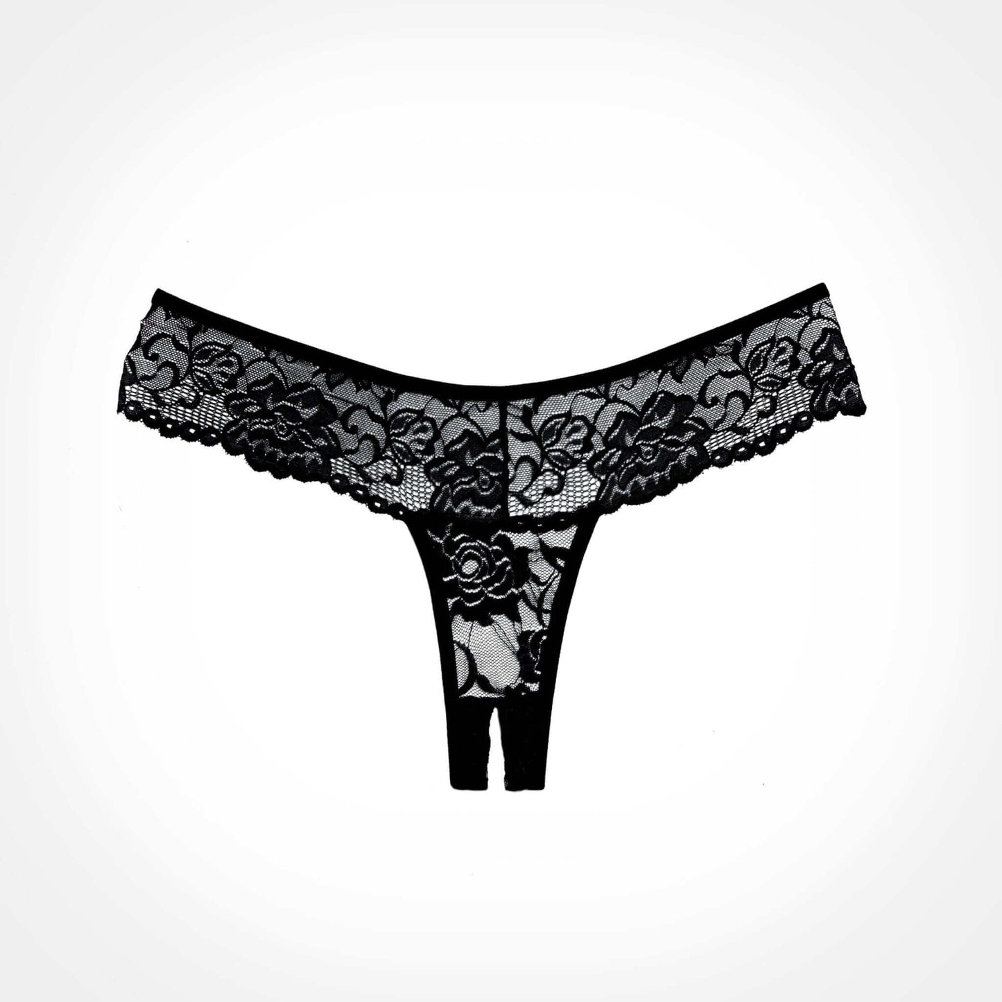 Sumptuous lace wraps your hips in this dreamy all lace crotchless thong.