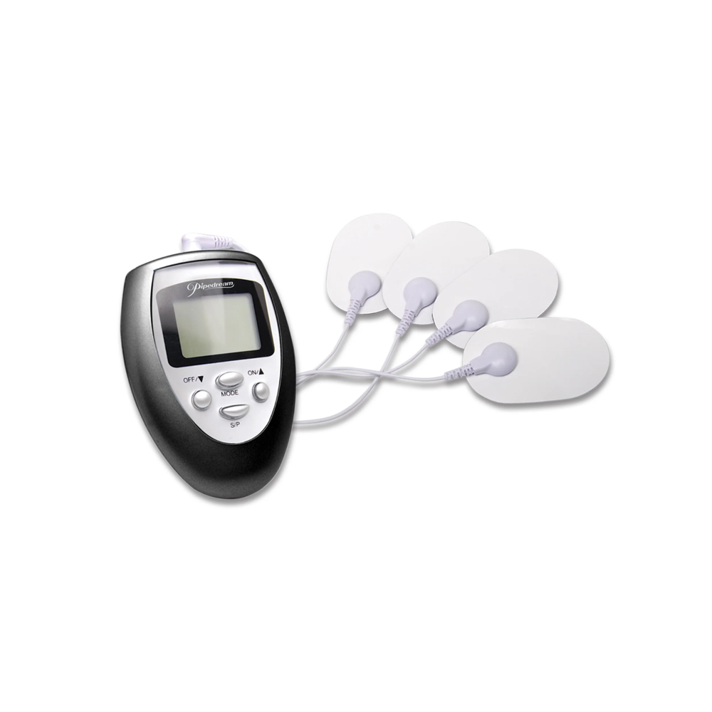 Choose from a sensuous tingle to a throbbing tap, all with the push of a button, and pick one of the 5 body zones to stimulate. With over 100 stimulation combinations to choose from, the possibilities are endless. With the built-in timer function, the battery-powered unit will automatically shut off after the 15 minute interval. The pads are self-adhesive, attach to the lead wire using snaps, and clean up easily after the fun with Pipedream Toy Cleaner and warm water.