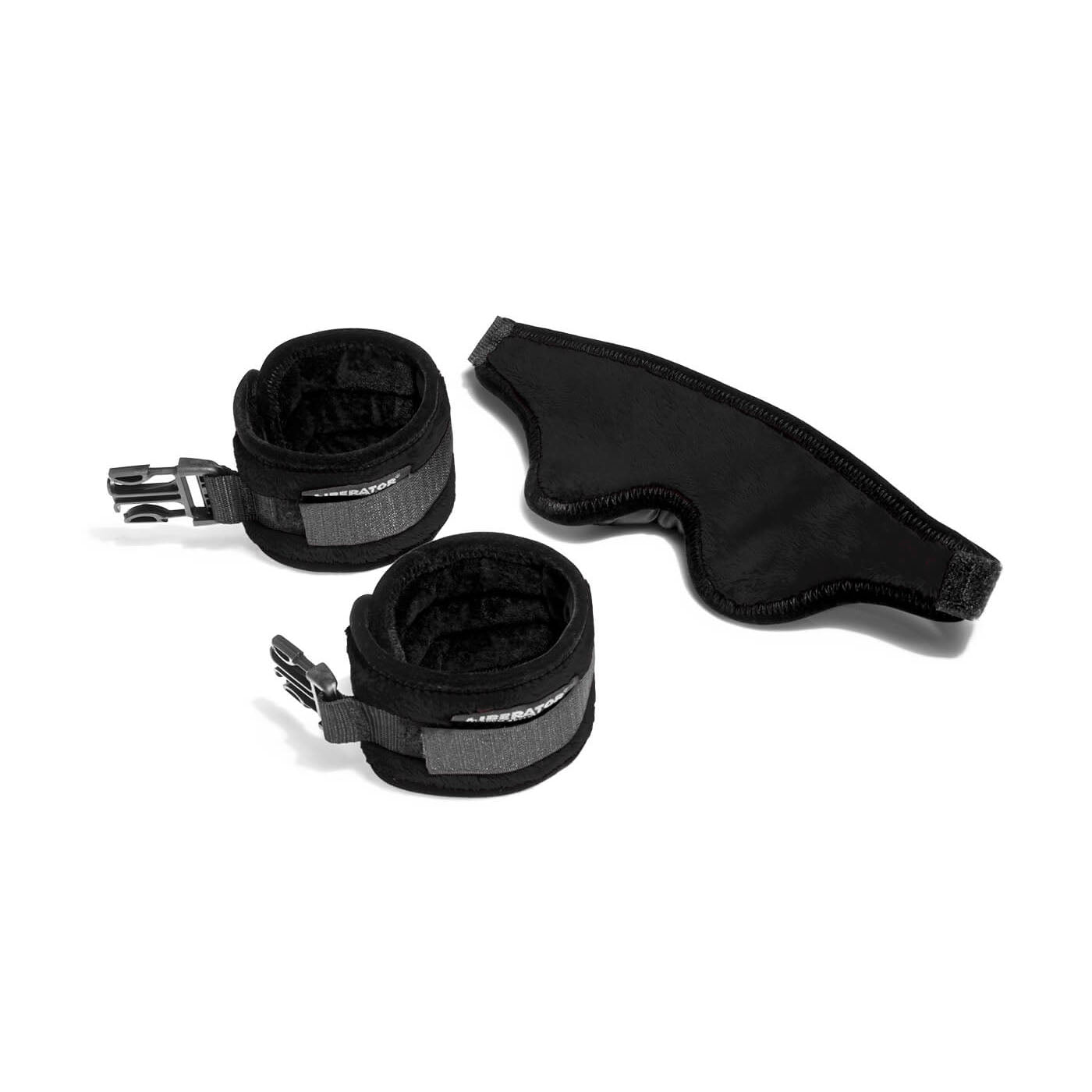 No matter what you seek, this kit gives you the ability to explore your options! A blindfold for intensity, wrist cuffs for restraint, and tender tie-downs to loop around railings, bedposts and furniture make this the perfect introduction to bondage play. Each cuff and blindfold comes lined in incredibly soft black faux fur for comfort and additionally sexy sensations. These accoutrements also pair perfectly with Black Label Liberator Shapes.